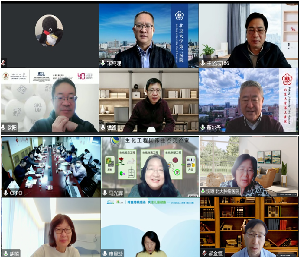中國工程院院士、北京大學(xué)心血管研究所所長、分子心血管學(xué)教育部重點實驗室主任董爾丹院士,中國科學(xué)院院士、中科院過程工程研究所研究員、生化工程國家重點實驗室主任、國家生化工程技術(shù)研究中心(北京)主任、聯(lián)合研發(fā)中心學(xué)術(shù)委員會主任委員馬光輝院士;北京大學(xué)醫(yī)學(xué)部科研處處長王堅成教授、北京大學(xué)第三醫(yī)院副院長宋純理教授、科研處處長閆麗盈研究員、李海燕副處長、新領(lǐng)先醫(yī)藥董事長陶新華先生、總裁高世靜女士、副總裁康建磊先生以及聯(lián)合研發(fā)中心學(xué)術(shù)委員會委員、北醫(yī)三院兒科主任韓彤妍教授、腫瘤化療與放射病科主任曹寶山主任等40余位專家,通過線上線下的方式參加了此次會議。會議由北京大學(xué)第三醫(yī)院藥物臨床試驗機構(gòu)李海燕主任和藥物臨床試驗機構(gòu)劉東陽副主任共同主持。