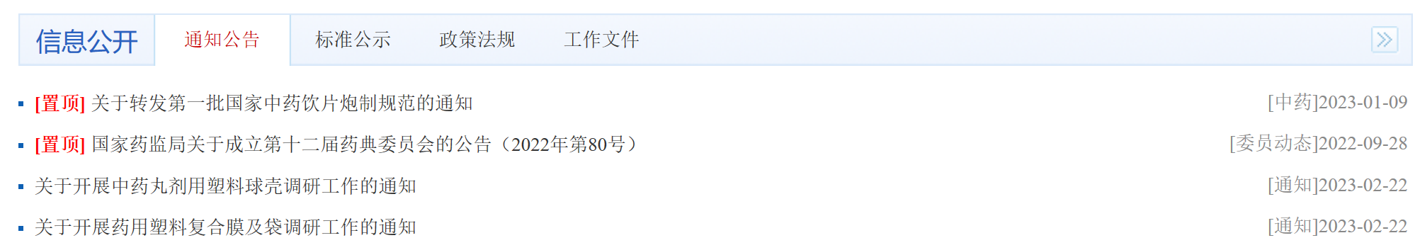 1. 本周藥典委開展關于開展藥用塑料復合膜及袋調研工作、中藥丸劑用塑料球殼調研工作的通知。