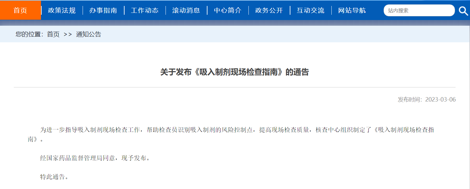國家藥監局核查中心關于發布《吸入制劑現場檢查指南》的通告