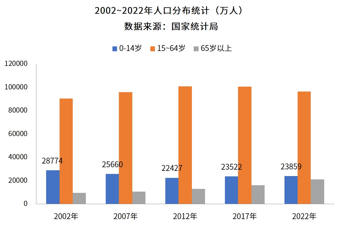 我國兒童的概念通常是指0~14歲的人群。我國兒童人口基數龐大,國家統計局數據顯示,2022年我國0~14周歲人口為2.39億人,占總人口比例17%。隨著國家全面開放二胎和三胎政策,兒童醫療需求亦不斷高漲,診療人次以每年400萬~500萬人次遞增。