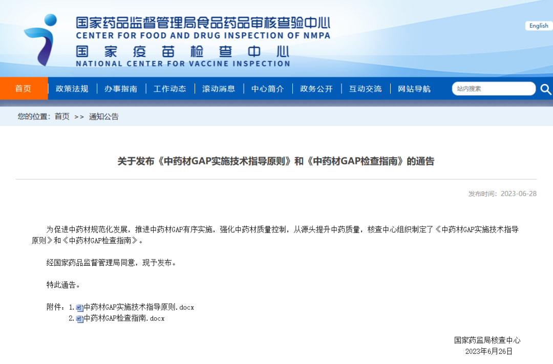 關于發布《中藥材GAP實施技術指導原則》和《中藥材GAP檢查指南》的通告