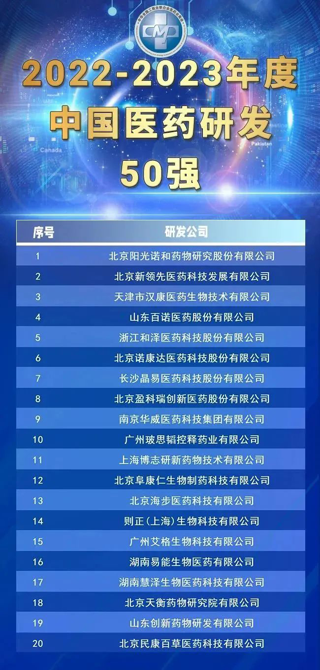 榜單發布 | 新領先醫藥連續八年蟬聯“中國醫藥研發50強”前三甲