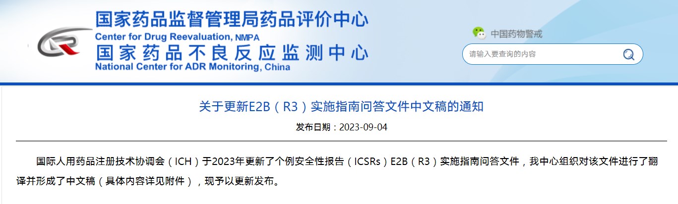 關于更新E2B(R3)實施指南問答文件中文稿的通知