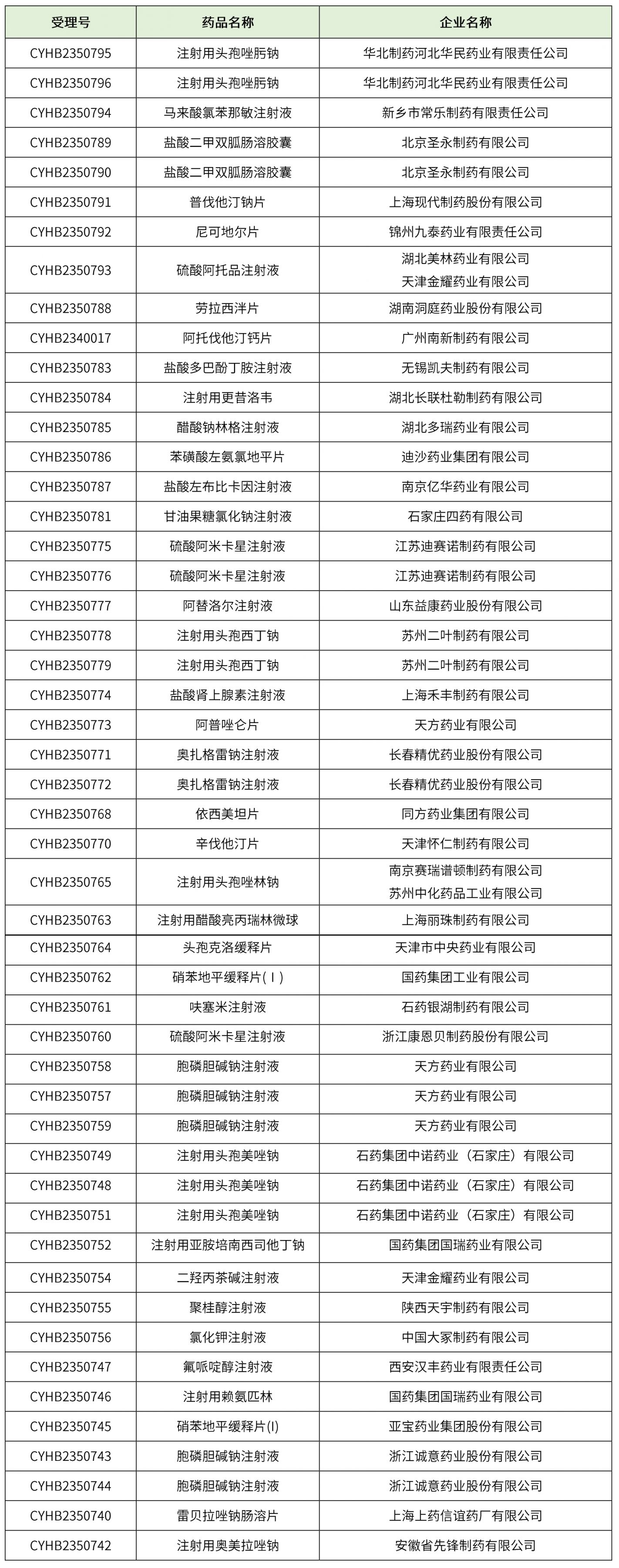 化藥67個(阿司匹林腸溶片、注射用頭孢呋辛鈉、硫酸阿托品注射液、醋酸鈉林格注射液、注射用哌拉西林鈉、替米沙坦片、氯氮平分散片、鹽酸氨溴索注射液、注射用氨芐西林鈉舒巴坦鈉、復方醋酸鈉林格注射液等),藥物詳細信息見下表。