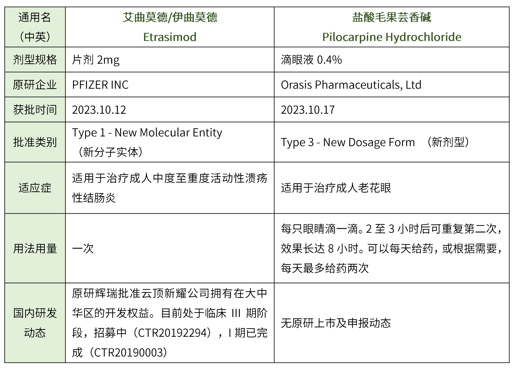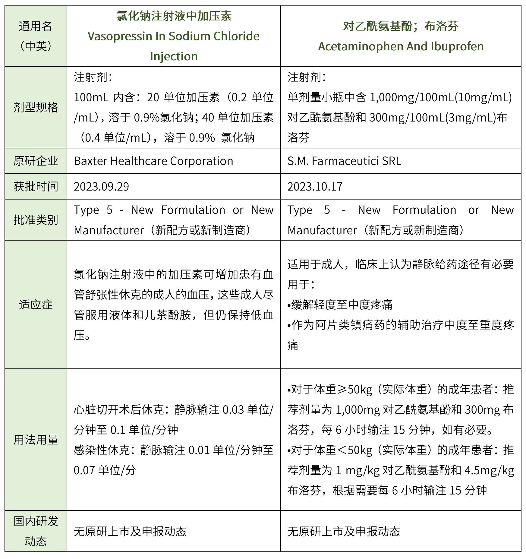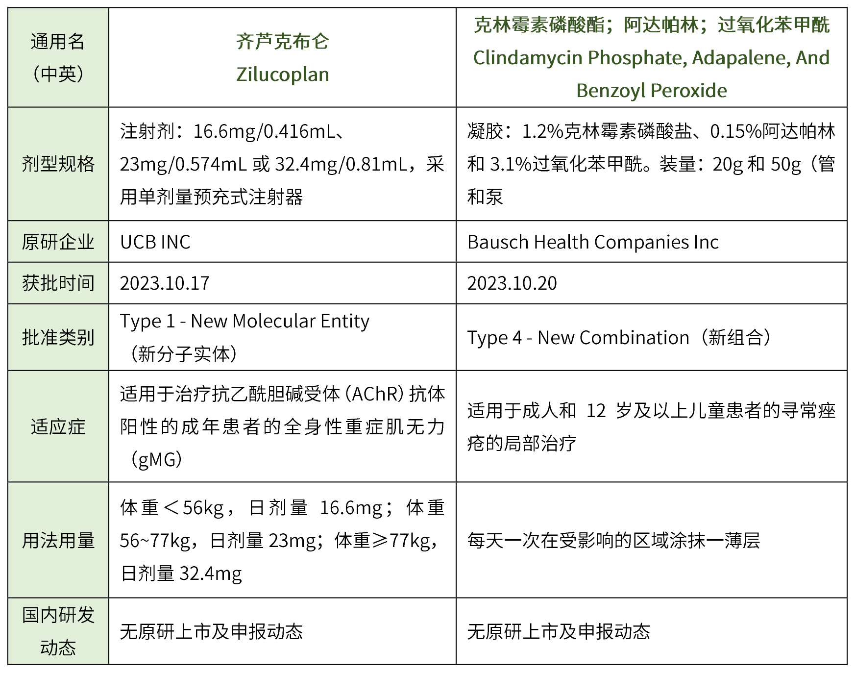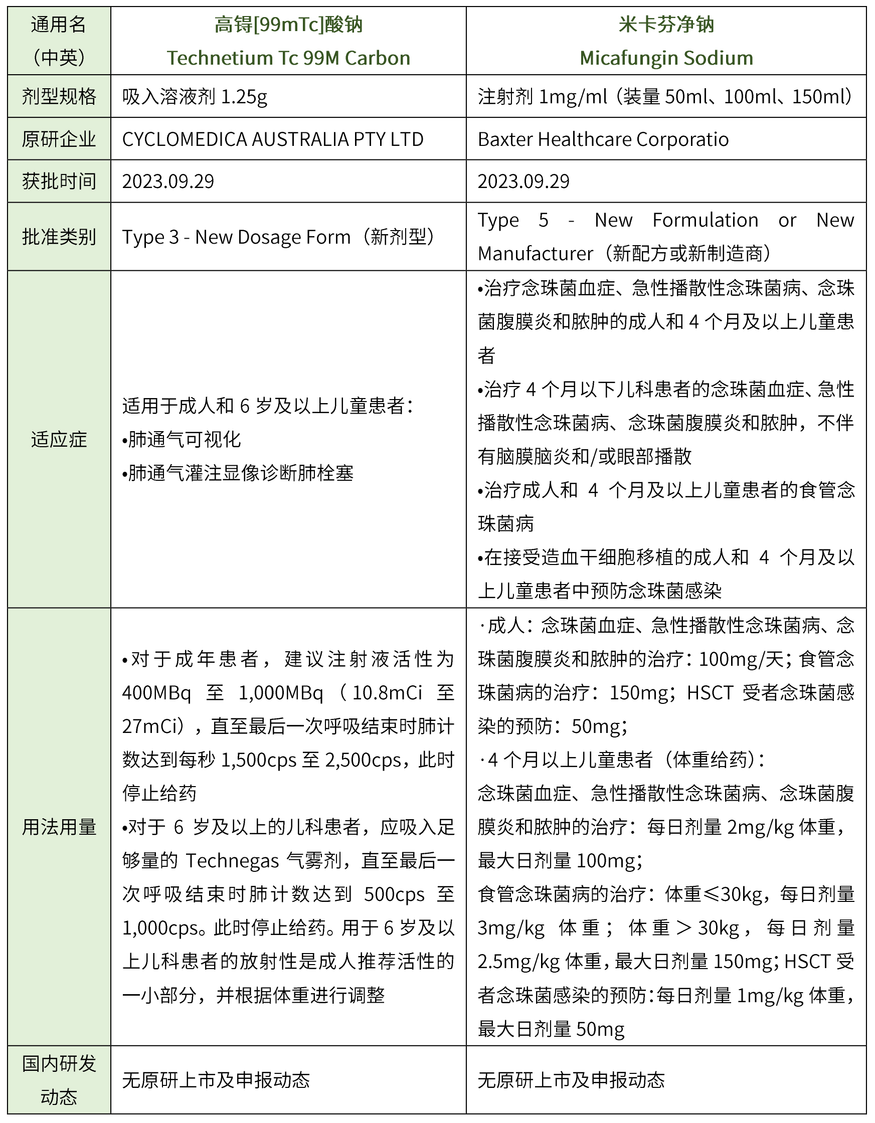 ③ 化藥5.1類進口2個(用于制備放射性藥物鎵(68Ga)gozetotide注射液的藥盒、柯拉特龍乳膏),藥物詳細信息見下表。