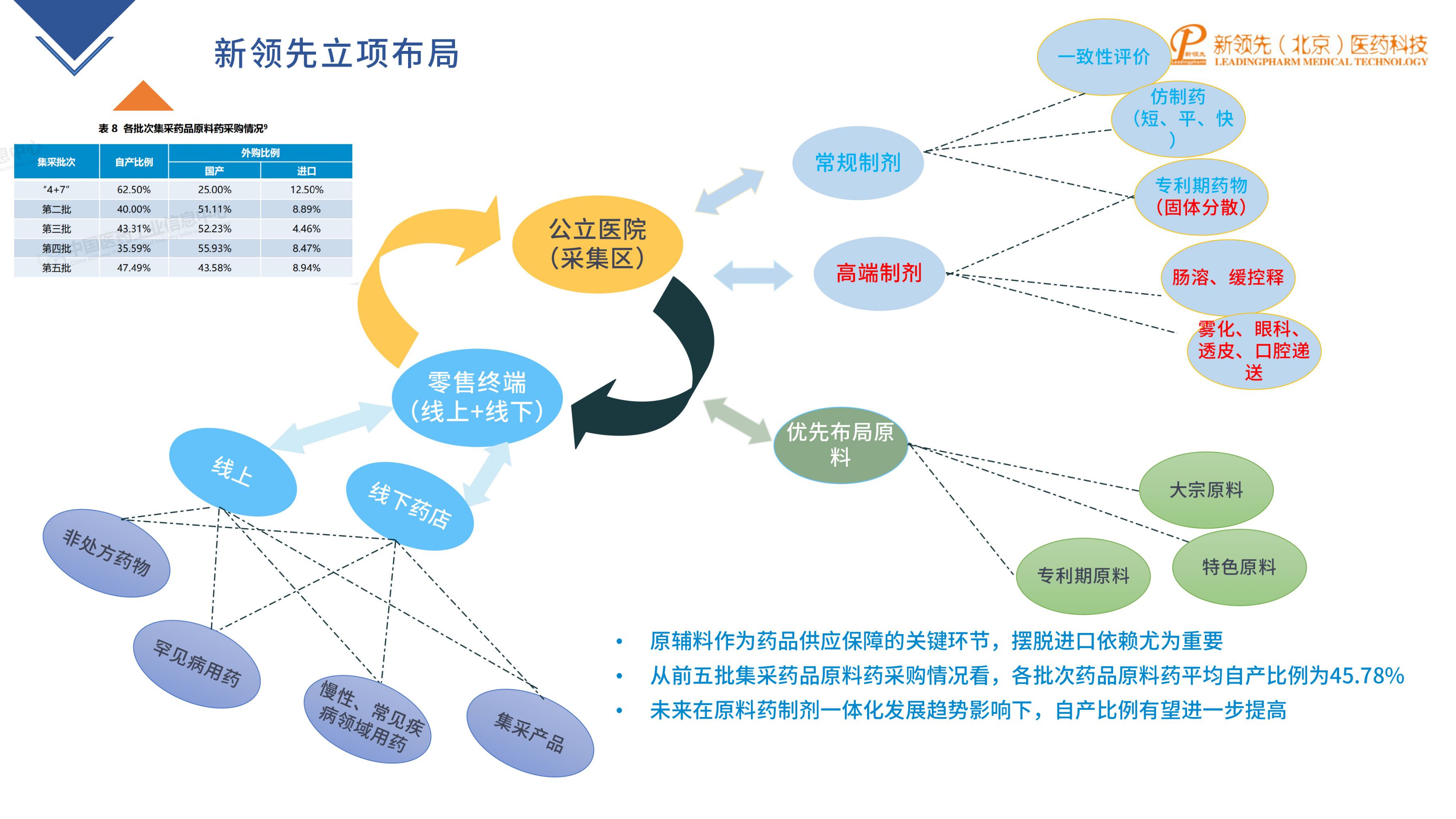 前瞻性的立項調研作為藥品研發過程中至關重要的一環,通過科學的方法進行信息收集和分析,確定藥物研究方向和策略,可以有效地提高產品研發的成功率。新領先一直以來高度重視產品立項,組建30余人高專業水準的立項團隊,針對市場潛力品種進行全方位、多維度調研分析,遴選高價值品種以及改良型新藥品種進行立項研發,以滿足未被滿足的臨床需求為導向,以終為始,長期堅持資源投入,并不斷加強自身技術創新和實踐積累,滿足客戶不斷升級的產品開發需求。