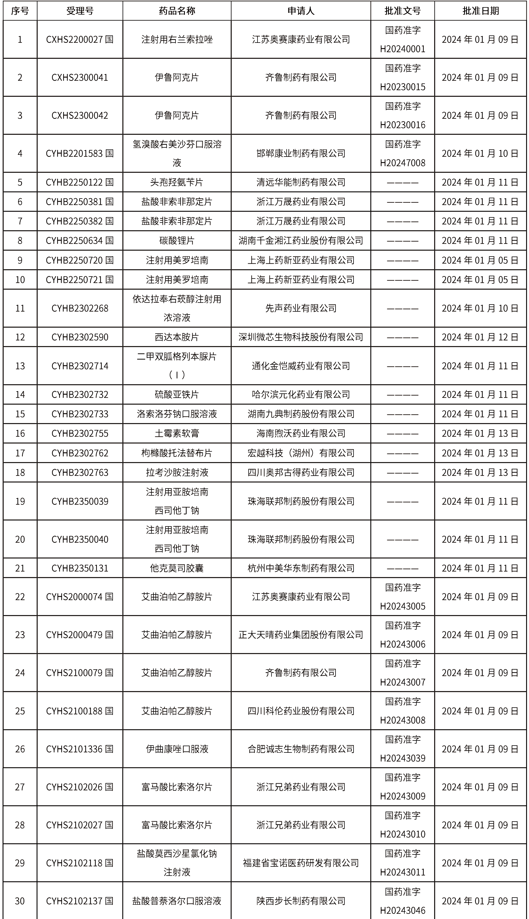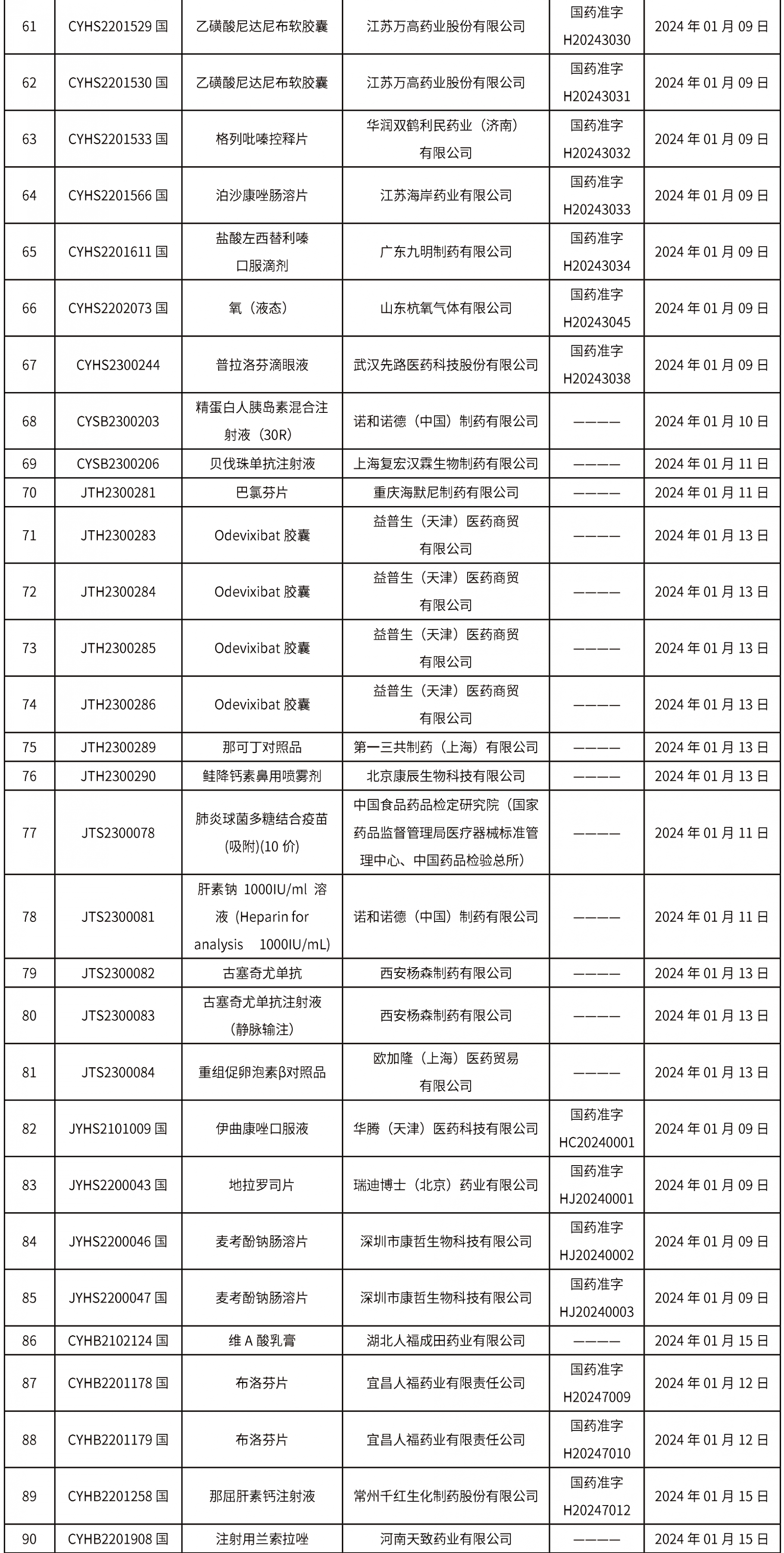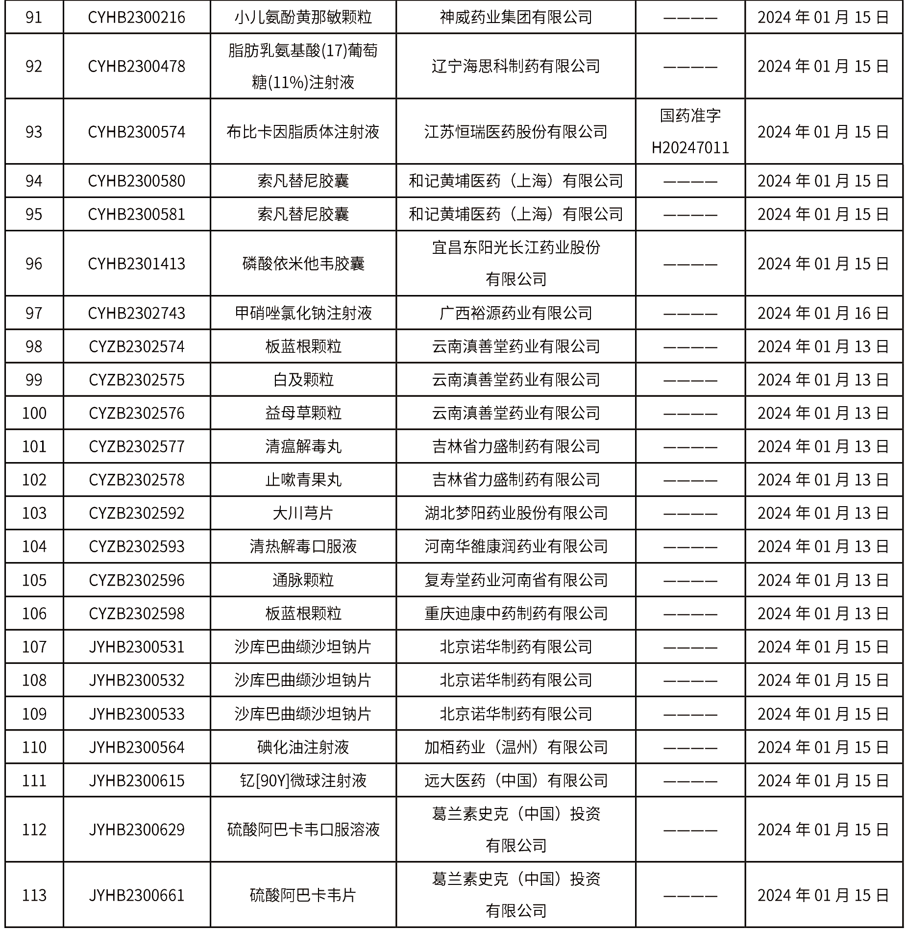 2024年1月15日中藥品種保護受理公示