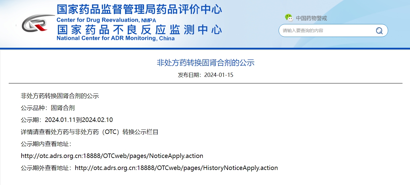 非處方藥轉換固腎合劑的公示