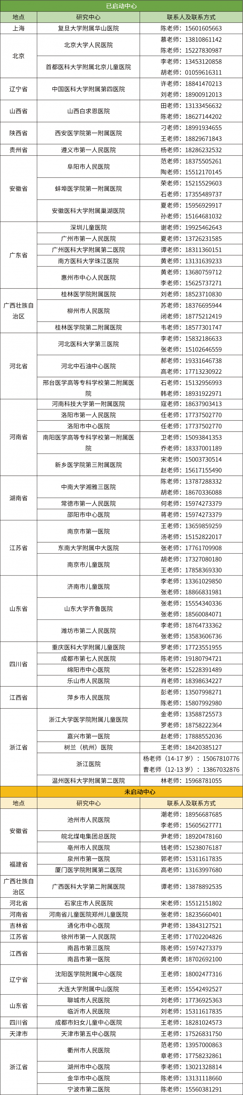 如果您或您的孩子對本研究感興趣,請您聯系以下醫生。經過醫生詳細診察,若您或您的孩子符合研究條件,并自愿參加,您將會: