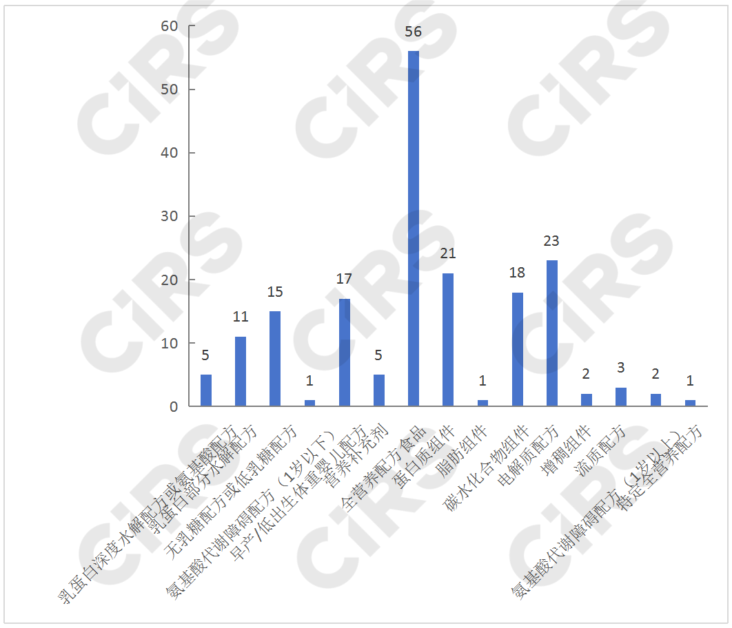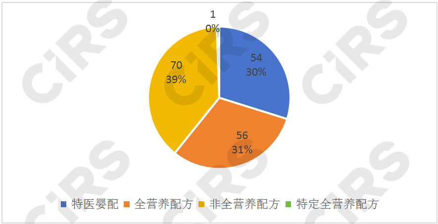 目前,已獲批產品中有54款為特殊醫學用途嬰兒配方食品,占到了總數的30%,包括5款乳蛋白深度水解配方或氨基酸配方、11款乳蛋白部分水解配方、15款無乳糖或低乳糖配方、1款氨基酸代謝障礙配方、17款早產/低出生體重嬰兒配方、5款營養補充劑;70款為非全營養配方食品,包括21款蛋白質組件、1款脂肪組件、18款碳水化合物組件、23款電解質配方、2款增稠組件、3款流質配方、2款氨基酸代謝障礙配方(1歲以上),占總數的39%;56款為全營養配方食品,占總數的32%,包括9款全營養配方食品(1-10歲)和47款全營養配方食品(1歲以上);特定全營養配方食品僅有1款,為速熠素特殊醫學用途腫瘤全營養配方食品。