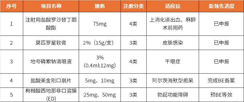 新領先項目進度:2024年1月已申報,預計2025年7月獲批。