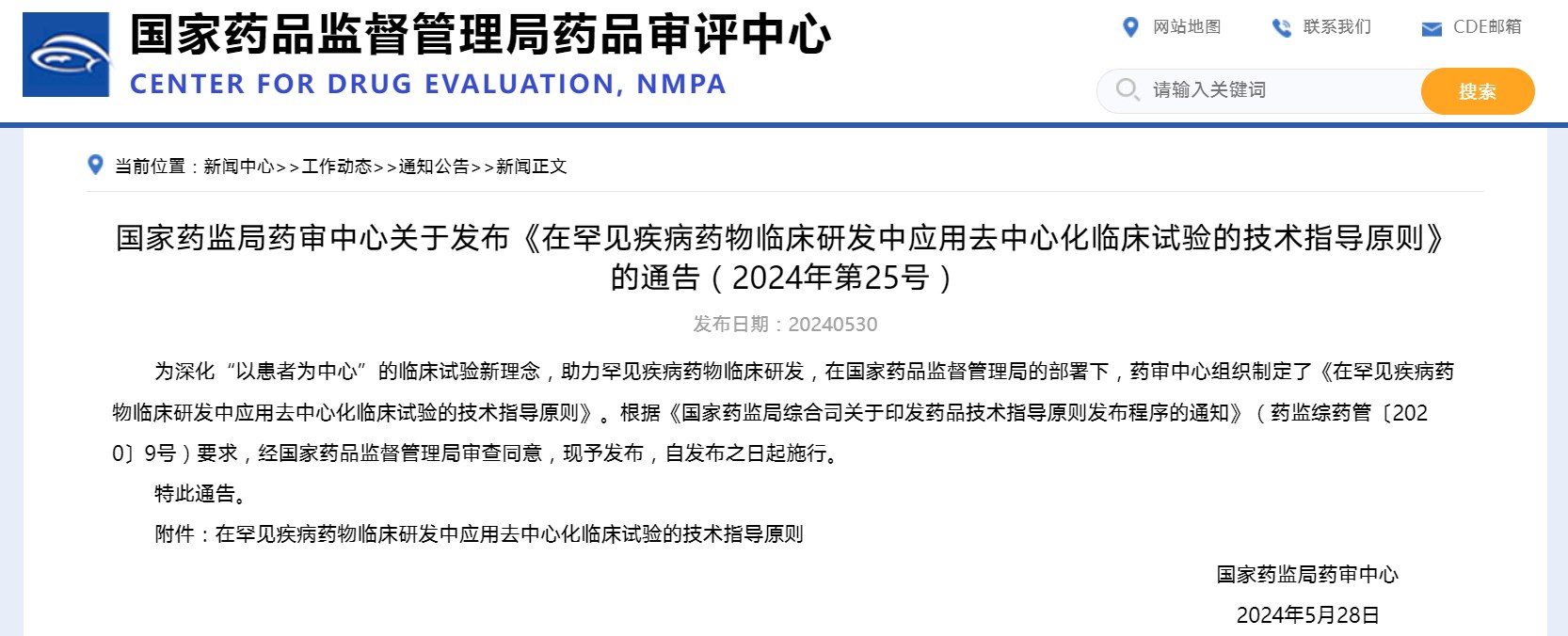國家藥監局藥審中心關于發布《在罕見疾病藥物臨床研發中應用去中心化臨床試驗的技術指導原則》的通告(2024年第25號)