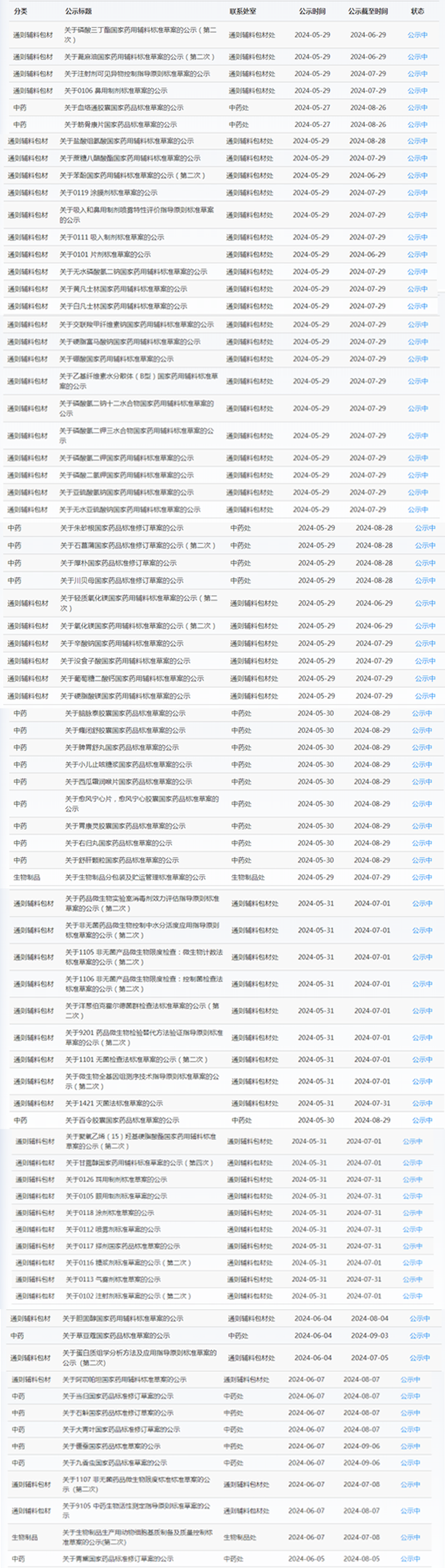 5月27日-6月7日,藥典委發布的標準草案公示如下: