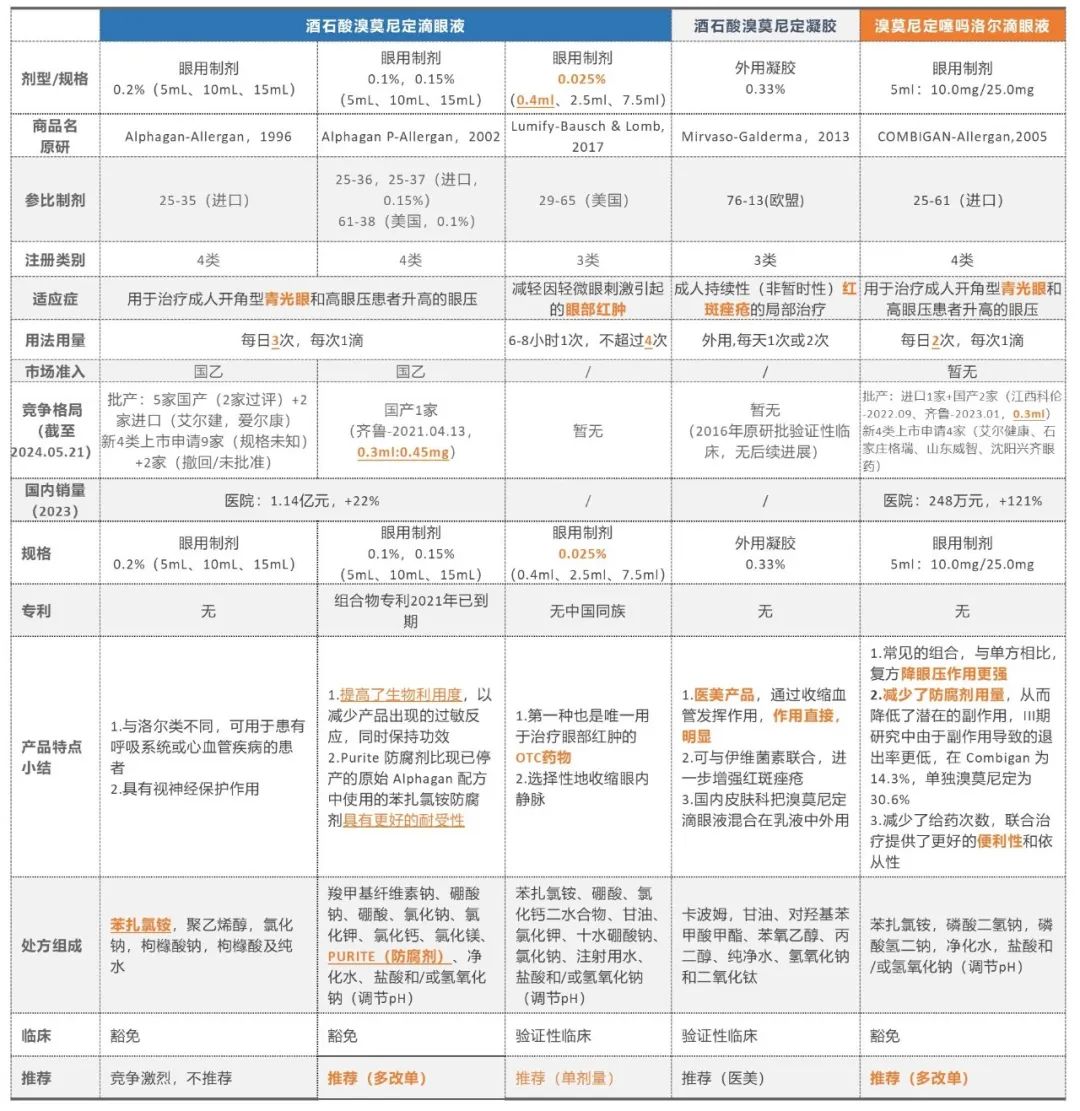 建議開發(fā)改善安全性的0.01%/0.15%滴眼液、低濃度0.025眼部紅腫產品、復方制劑,持續(xù)關注醫(yī)美外用凝膠進口動向。