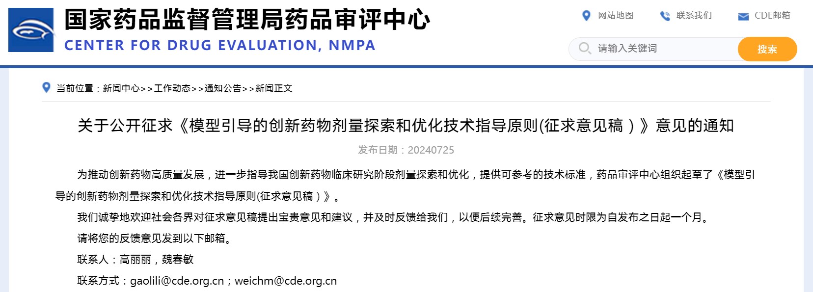 關于公開征求《模型引導的創(chuàng)新藥物劑量探索和優(yōu)化技術指導原則(征求意見稿)》意見的通知