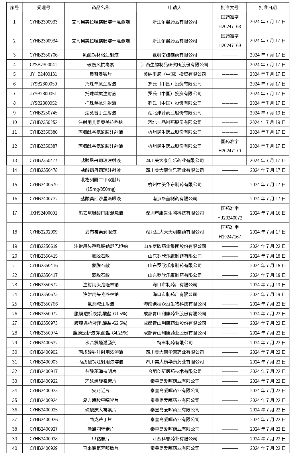 截至2024年7月26日 15:00, 發(fā)布110個待領取藥品批準證明文件,其中注射液41個,一致性評價品種19個。