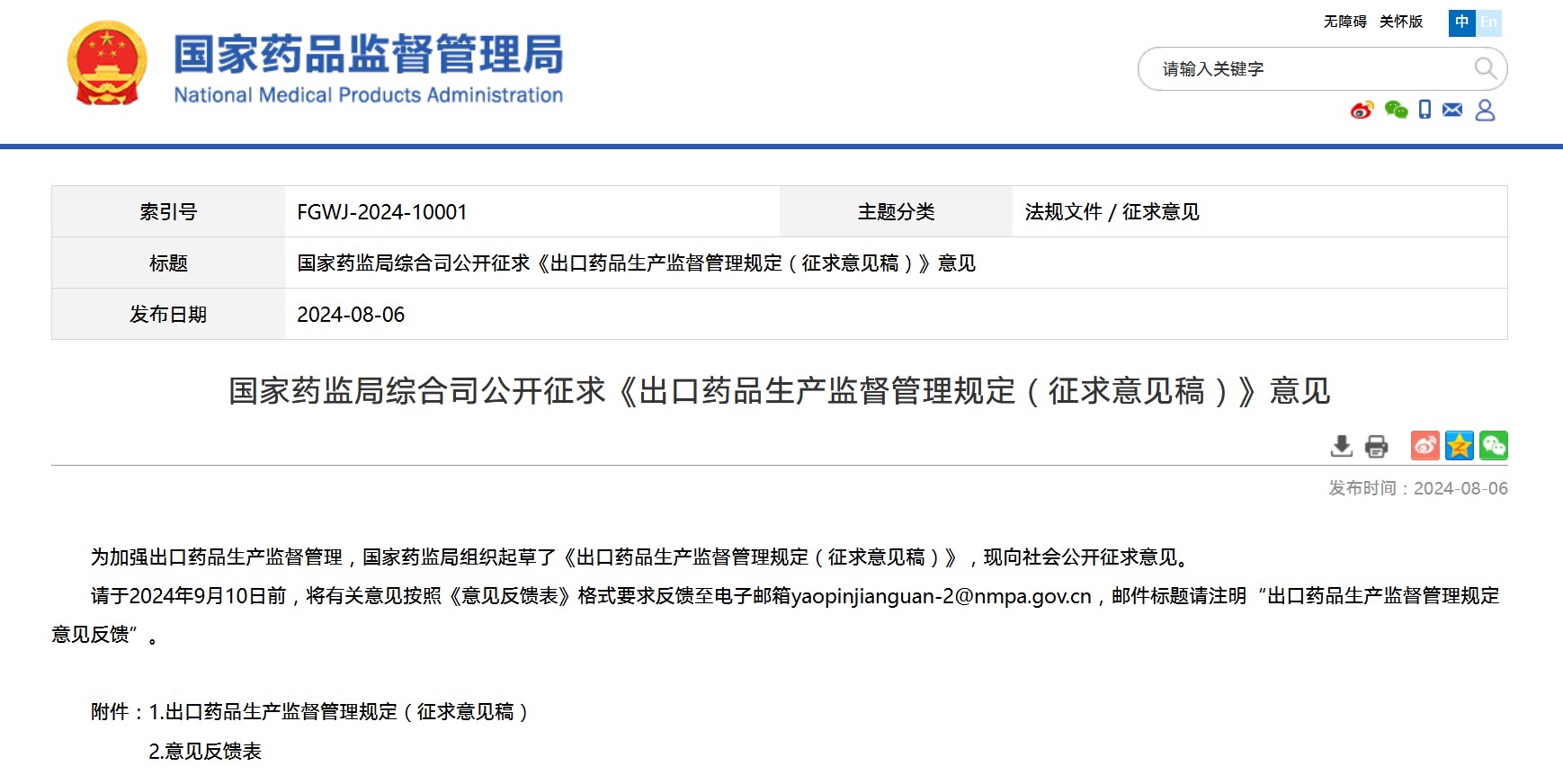 國家藥監局綜合司公開征求《出口藥品生產監督管理規定(征求意見稿)》意見