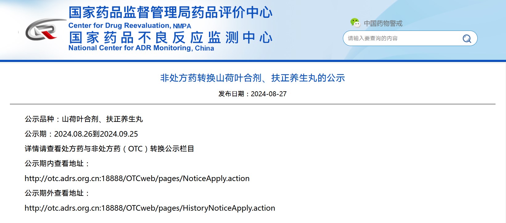 非處方藥轉換山荷葉合劑、扶正養生丸的公示