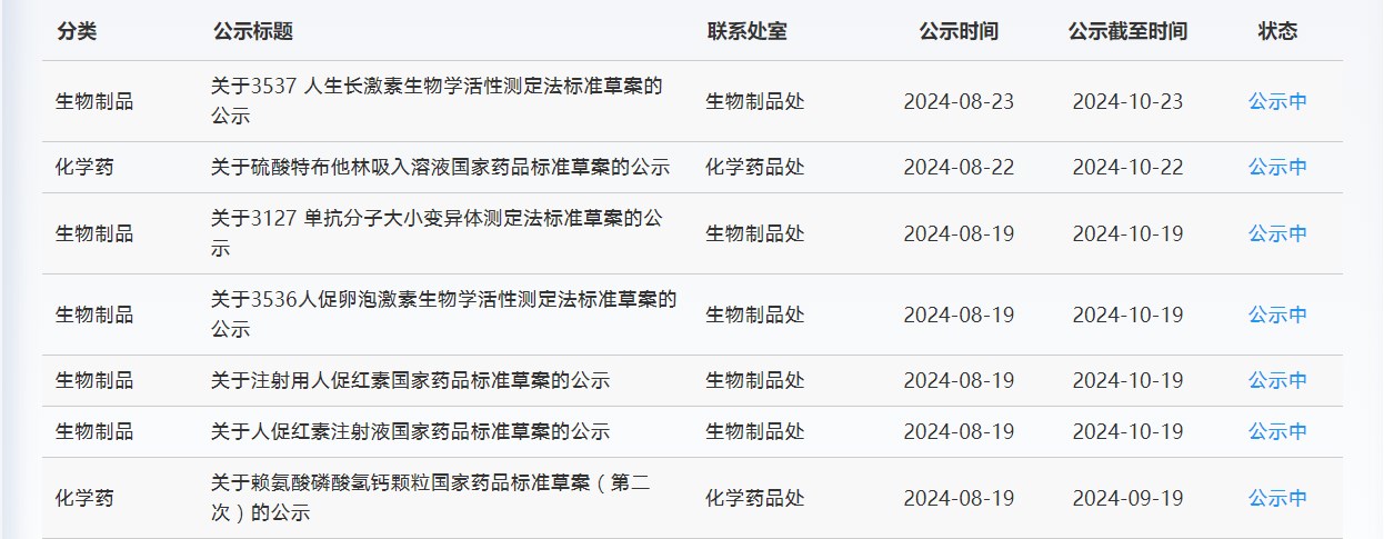 近期,藥典委發布的標準草案公示如下: