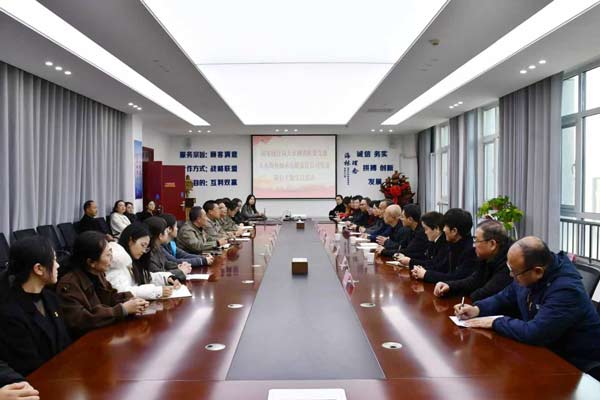 參觀結束后,雙方在公司辦公樓2號會議室召開了專題座談會。會上,共同深入學習了黨的二十屆四中全會精神。隨后,雙方圍繞“貫徹四中全會精神凝聚黨建引領合力”主題展開深入交流。