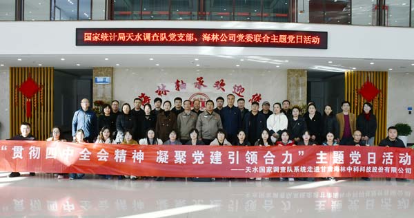 11月20日下午,國家統計局天水調查隊黨組書記、隊長劉斌,副隊長馮世平等一行來到海林公司,與公司黨委聯合開展主題黨日活動。公司黨委副書記、有限公司總經理鄭文奎,監事會主席、工會主席劉興民及相關部門負責人陪同并參加活動。