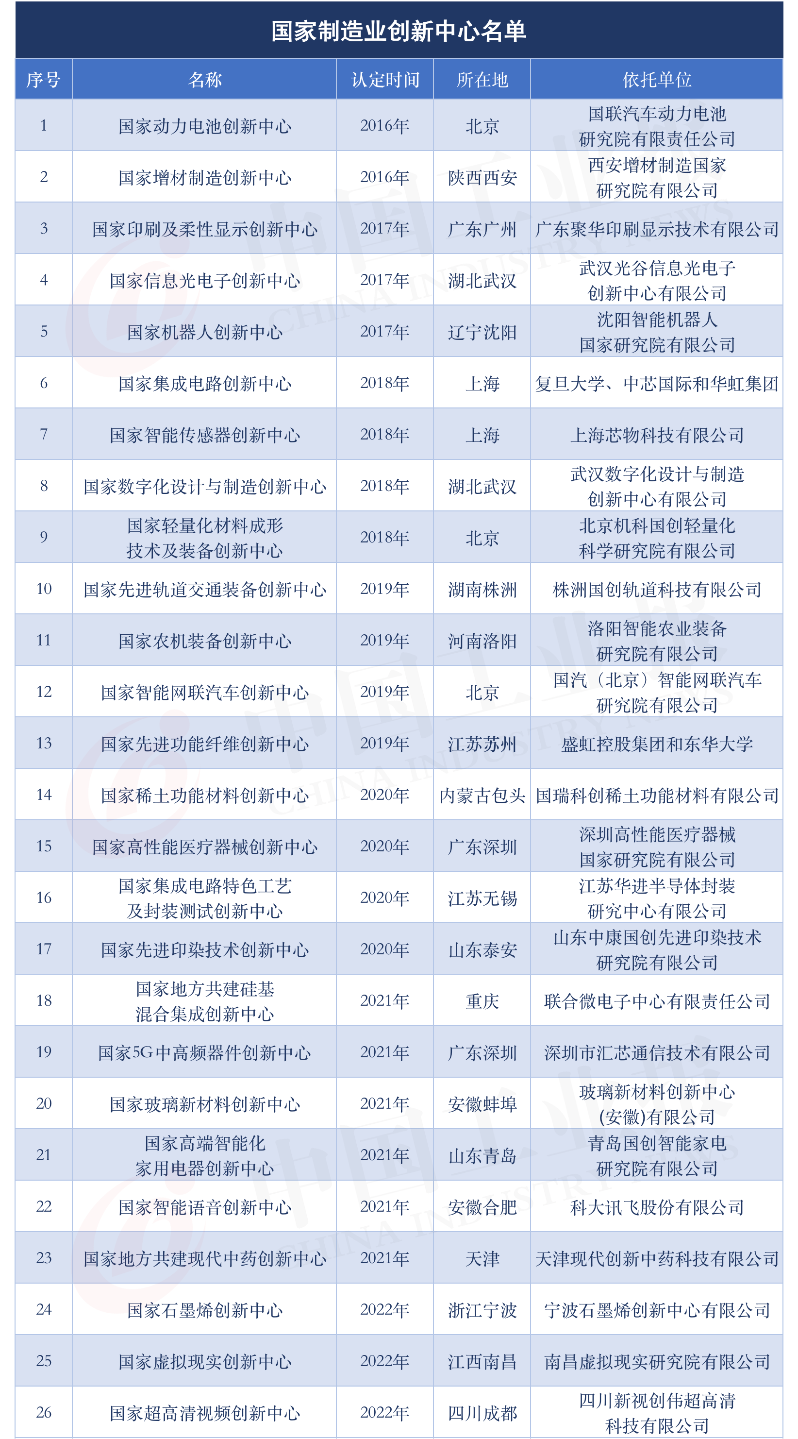 本文梳理了26家國家制造業創新中心的概況,以饗讀者。