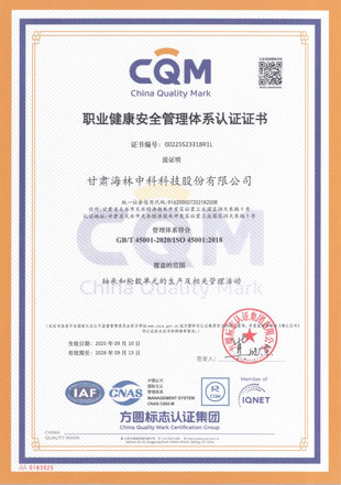 2022年9月通過了職業健康安全管理體系認證(國標版)