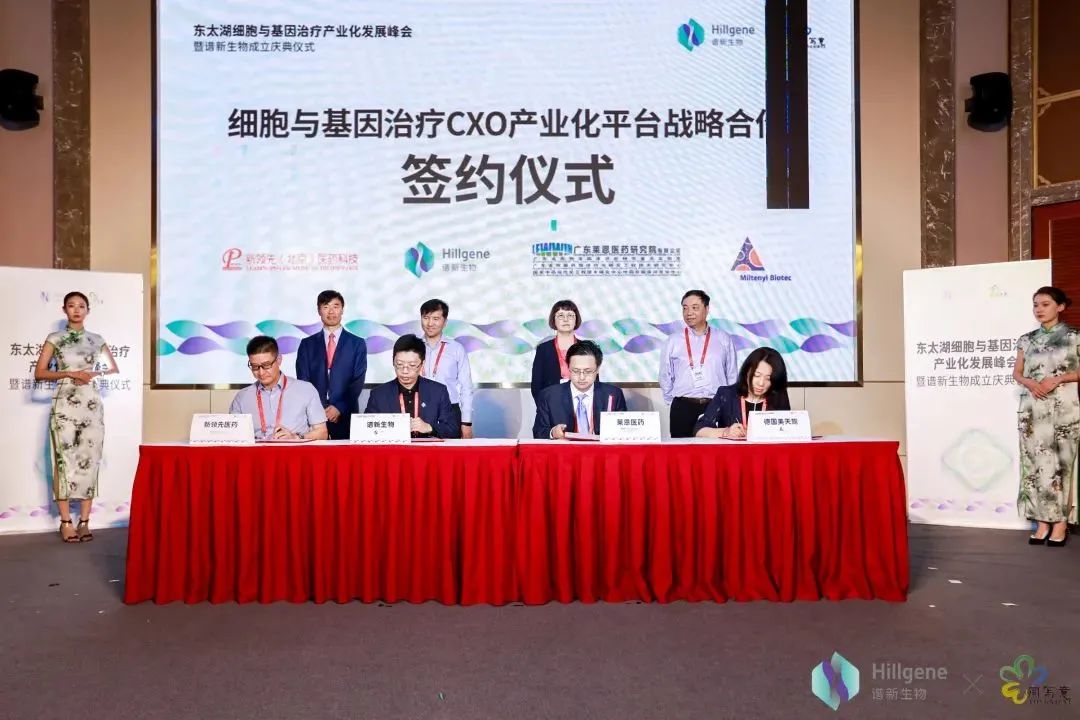 The signing ceremony was held grandly at the East Taihu Lake Cell and Gene Treatment Industrialization Development Summit. Mr. Ben Zhiqin, vice governor of Wuzhong District, Professor Yang Yong, Dean of the School of Basic Medicine and Clinical Pharmacy of China Pharmaceutical University, Mr.Wang Jufeng, Chairman of the Chinese Association of Safety Pharmacology, Vice Chairman and Secretary General of the Chinese Committee of Drug toxicology, PhD, Dr.Yang Huan, Director of the General Toxicology Department, Fosun Pharmaceutical, Vice President and CTO, Dr.Wang Liqun, chairman of Imvira, Zhou Guoying, Vcanbio CSO Dr. Zhang Yu, Pregene Biological CMO Dr Yao Yi, chairman of Iasobio Dr Zhang Jinhua, Genechem CEO Dr.Yuan Jijun, EdiGene CEO Dr. Wei Dong, sponsor of Tongxieyi Freehand Brushwork BBS, Dr.Cheng Zengjiang, Chairman of Lifezhengzhou, Dr. Zhongnan, Chairman, Mr. Li Hongjian, Chief Strategic Officer Dr Zhu Yi of Puxin Biological, Chairman of Beijing Leadingpharm Mr Tao Xinhua and nearly hundred industry leaders guests attended and witnessed this important moment.