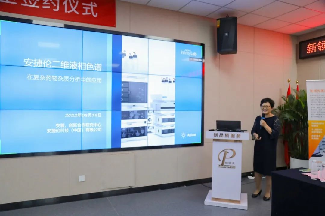 In the speech, Ms. Julie Gao, President of Leadingpharm, first expressed heartfelt thanks to the leaders of both sides and the experts and guests who witnessed the cooperation. She said that this cooperation was strongly supported by Mr. Wallace Tao, Chairman of Leadingpharm. Leadingpharm is a high-tech enterprise that provides global pharmaceutical enterprises with CXO Whole Industrial Chain Services including innovative drugs, improved new drugs and generic drugs. It is committed to solving various technical problems in the whole life cycle of drug R & D, and providing customers with comprehensive solutions including high-end preparation R & D, clinical research of innovative drug, quality system construction, medical protocol design guidance and so on in an innovative way, which has won the recognition of nearly 400 customers. Leadingpharm always adheres to the service concept of "customer-centric" and creates the maximum value for customers, which is highly consistent with Agilent. As a global leading brand in the field of life science diagnosis and applied chemistry market, Agilent has outstanding advantages in instrument application and detection technology. We hope that the two sides will join hands and realize complementary advantages rely on the innovative research joint laboratory to better serve the common customers of both sides, solve the key technologies and hot problems in the industry by launching research of corresponding cooperative projects. Agilent also hoped that with the open platform of Leadingpharm CXO and in collaboration with the industrial chain and supply chain partners, more new technologies and products that meet the clinical needs will be launched to solve the drug needs of patients.